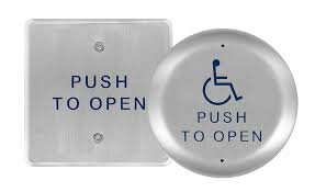 6" ROUND S/S HANDICAP EXIT BUTTON W/EMBOSSED UNIVERSAL HANDICAP  " Wheelchair Symbol"